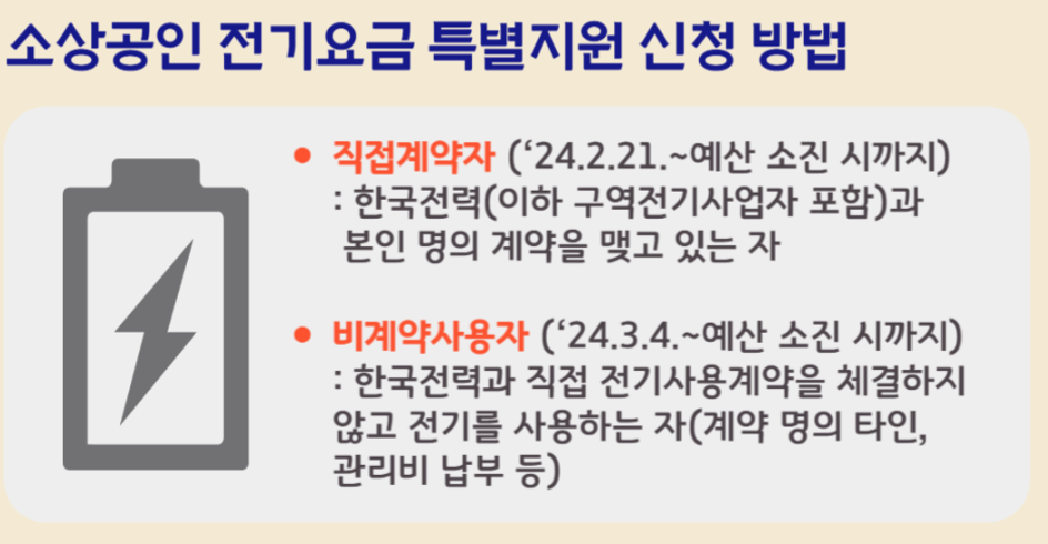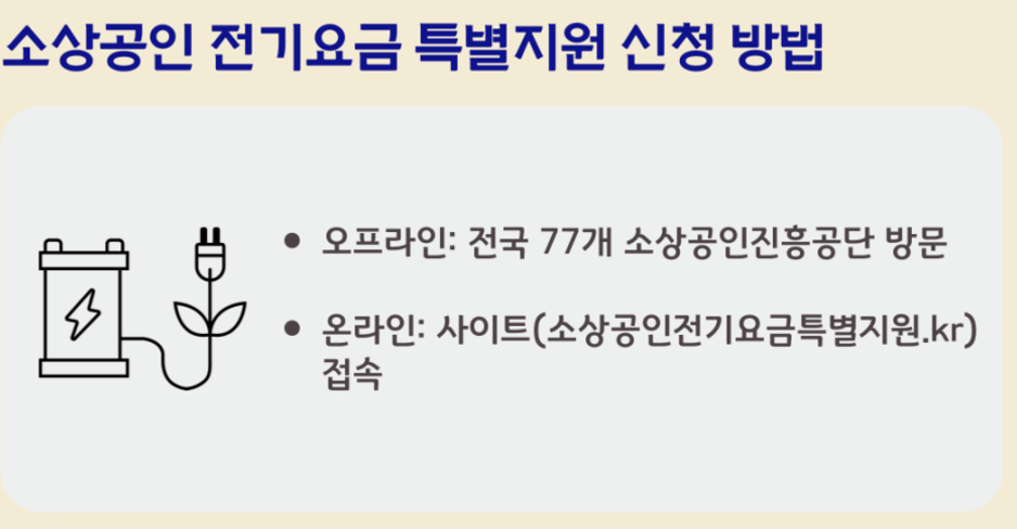 - 온라인 신청: '소상공인전기요금특별지원.kr' 홈페이지에서 신청